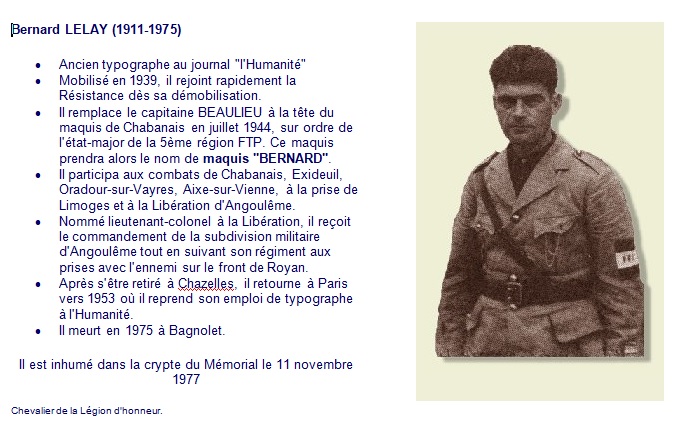 HOMMAGE AU COLONEL BERNARD LELAY (maquis BERNARD chef combattant lors de l'accrochage de Chabanais "7 maquisars tués")