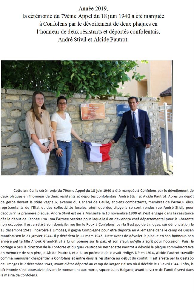 le 27 juin 1944 à 17h20, un groupe de FTP du maquis de Chabanais sous le commandement de André Bailly (Marc Beaulieu dans la Résistance) entre à Confolens avec la mission de récupérer de l'essence et un car Citram. A la hauteur du tribunal civil(proche du garage Renault actuel), à proximité du pont appelé aujourd'hui « Babaud Laribière » le groupe tombe nez à nez cinq véhicules d'une soi-disant division 608 constituée avec les moyens du bord. Beaulieu ouvre le feu vers le pont, tue l'officier, un capitaine en tête de la colonne de la Wehrmarcht. Le combat fait rage, pendant quelques instant, six hommes sont bléssés côtés du maquisards et trois du côté allemand. Les maquisards décrochent et pendant cette manoeuvre, l'un deux Georges Vagneux âgé de 21 ans tombe mortellement atteint.