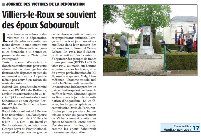 Le bureau de l’ANACR Comité de Ruffec est composé des personnes suivantes,