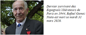 C'est avec une immense tristesse que nous venons d'apprendre la disparition de ce héros, libérateur de la France, que fut Rafael Gomez Nieto.